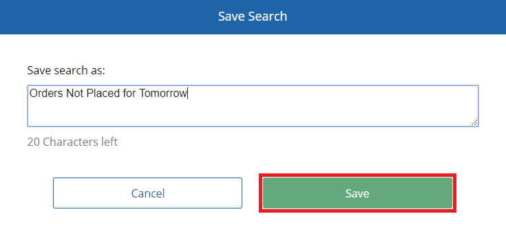 Note: The name of a Saved Search cannot contain special characters (!,#,$,’, etc.).
