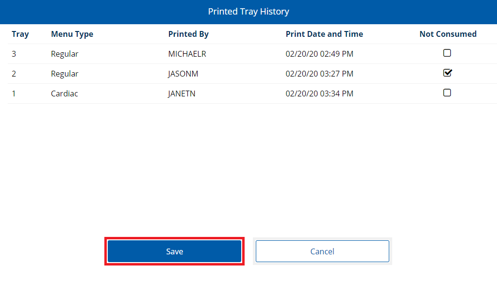 - For the tray(s) you want to mark, click to select Not Consumed.