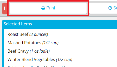 When you are done selecting menu items for a meal, you can print the ticket so it will be delivered as soon as possible.