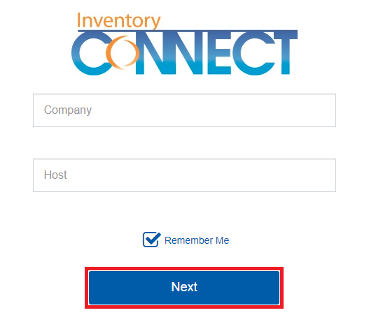 4. If you want Inventory Connect to remember your company, and host, click to select Remember Me.