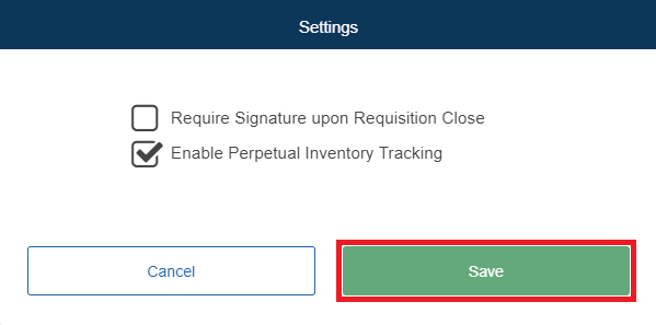 This setting defines whether or not you are using a perpetual inventory system. If using a perpetual inventory, each storage location and its on-hand inventory will be considered when creating a requisition. Using this system will potentially slow down the requisition process but will ensure that an accurate stock record is kept. The storage location must be defined when an item is added to the requisition. By doing so, Inventory Connect will ensure that there is sufficient stock on hand at that location to satisfy the requisition. If the amount is insufficient, the on hand inventory may go into a negative quantity. To avoid negative quantities, the requisition will have to be adjusted, or the stock must be pulled from another storage location.