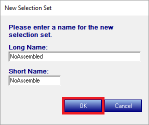 - In the Long Name box, enter a name for the selection set that indicates what stages are excluded (for example, for a selection set that excludes the Assembled stage, you can name is NoAssembled). The Short Name field will populate automatically.