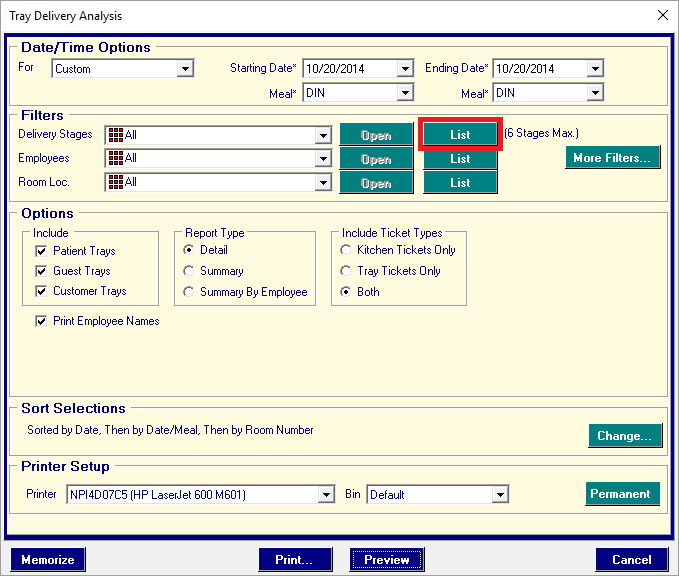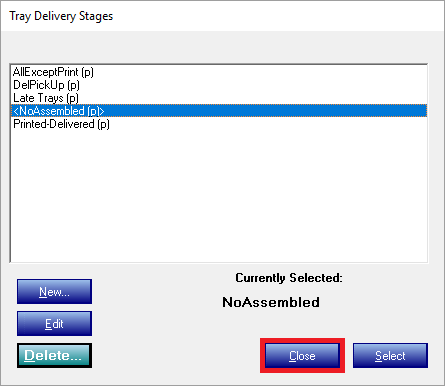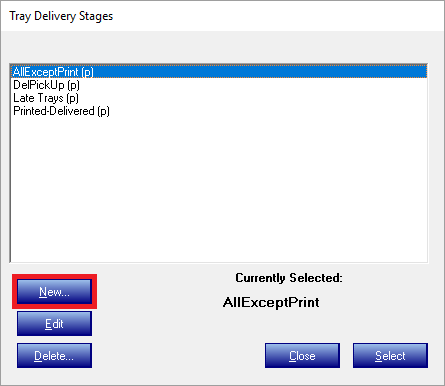 - To the right of the Delivery Stages list, click List. The Tray Delivery Stages dialog box appears.