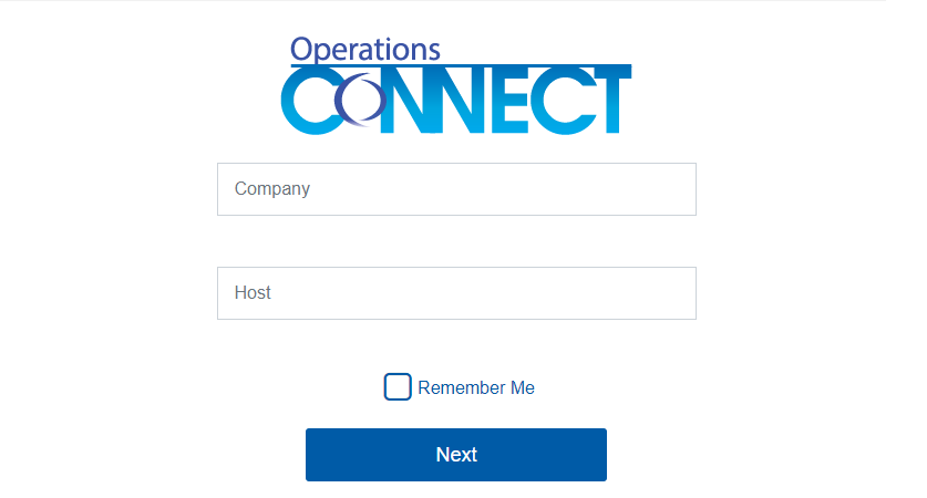 - If you want Operations Connect to remember your company, and host, click to select Remember Me.